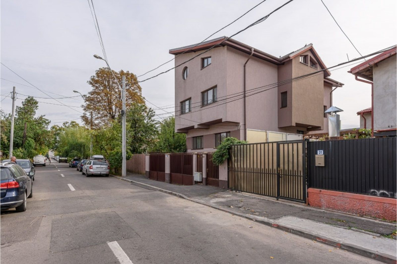 Situata in Bucurestii Noi, pe o strada frumoasa, cu vecini linistiti si case bine intretinute. Vila eleganta, pentru o familie cu copii care cauta confort, timp de calitate cu prietenii, spatii de joaca si relaxare. Curte frumos amenajata, cu terasa acoperita, barbeque si garaj subteran. Interior recent igienizat, luminos, practic si rafinat, cu spatii generoase.